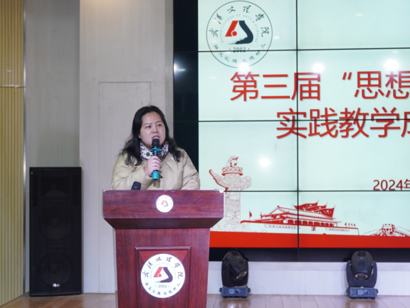 刘兰兰在活动的总结讲话中高度评价了本次活动的成功举办和取得的显著成果。她深入浅出的评价了此次参赛作品的优缺点;赞扬了此次作品的优秀与丰富,形式多样;同时希望同学们能够再深化一下自己的感悟优化细节。她指出,实践教学是思政课教学的重要组成部分,是把思政课和社会实践、专业课等有机联系在一起,有效的体现了思政小课堂社会大课堂的作用,搞好思政课社会实践对于培养员工的综合素质和创新能力具有重要意义,她鼓励广大思政课教师继续深化实践教学改革,探索更多有效的教学方法和手段,为培养担当民族复兴大任的时代新人贡献力量。