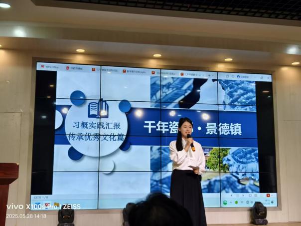 有的团队关注地方特色文化,以 “千年瓷都・景德镇” 为主题进行展示汇报。展示者从景德镇陶瓷的历史渊源、工艺特色以及文化价值等多个角度展开叙述,阐述了当地如何传承优秀传统陶瓷文化并推动其创新发展,展现出对本土文化的深刻理解和自豪感。